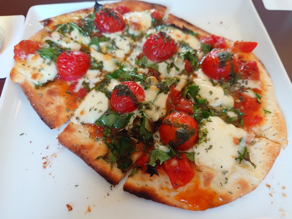 伊豆大島のイタリアンwakaのトマトと明日葉モッツァレラのピザは明日葉の香りがいい感じに効いている