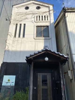 桝田酒造の酒蔵の扉に陶器のカバーがついた